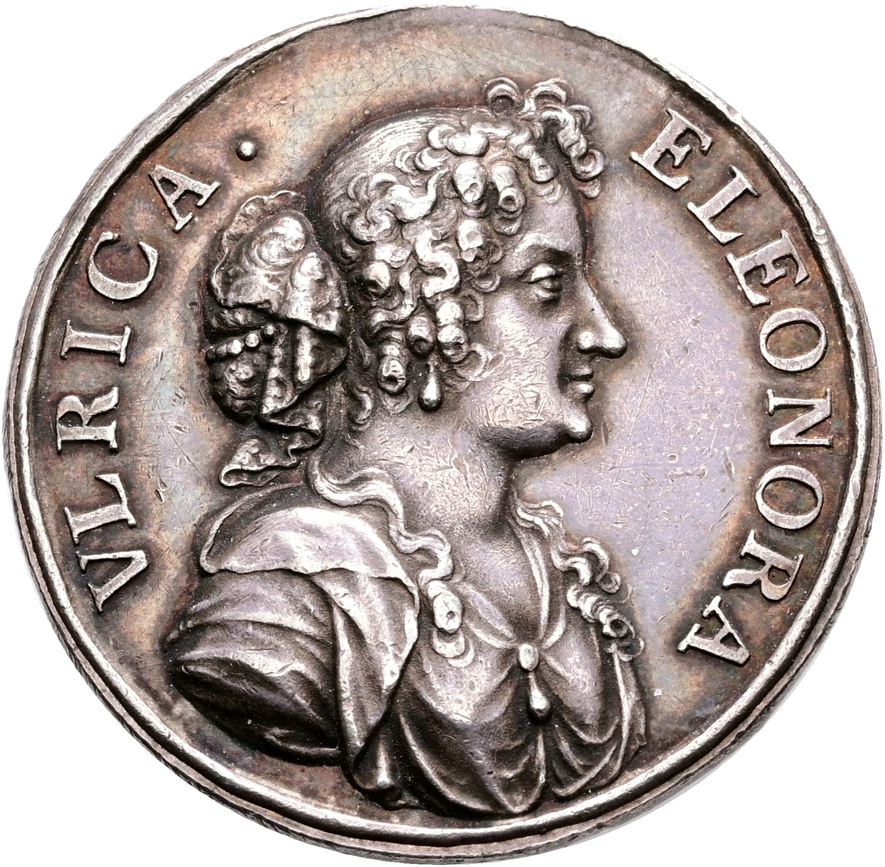 Dronning Ulrika Eleonoras kroning, 1680, af A. Karlsteen, Ag, 31 mm.