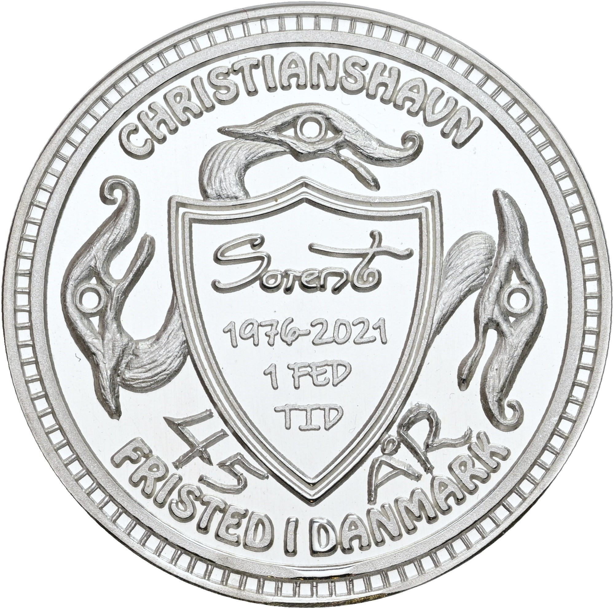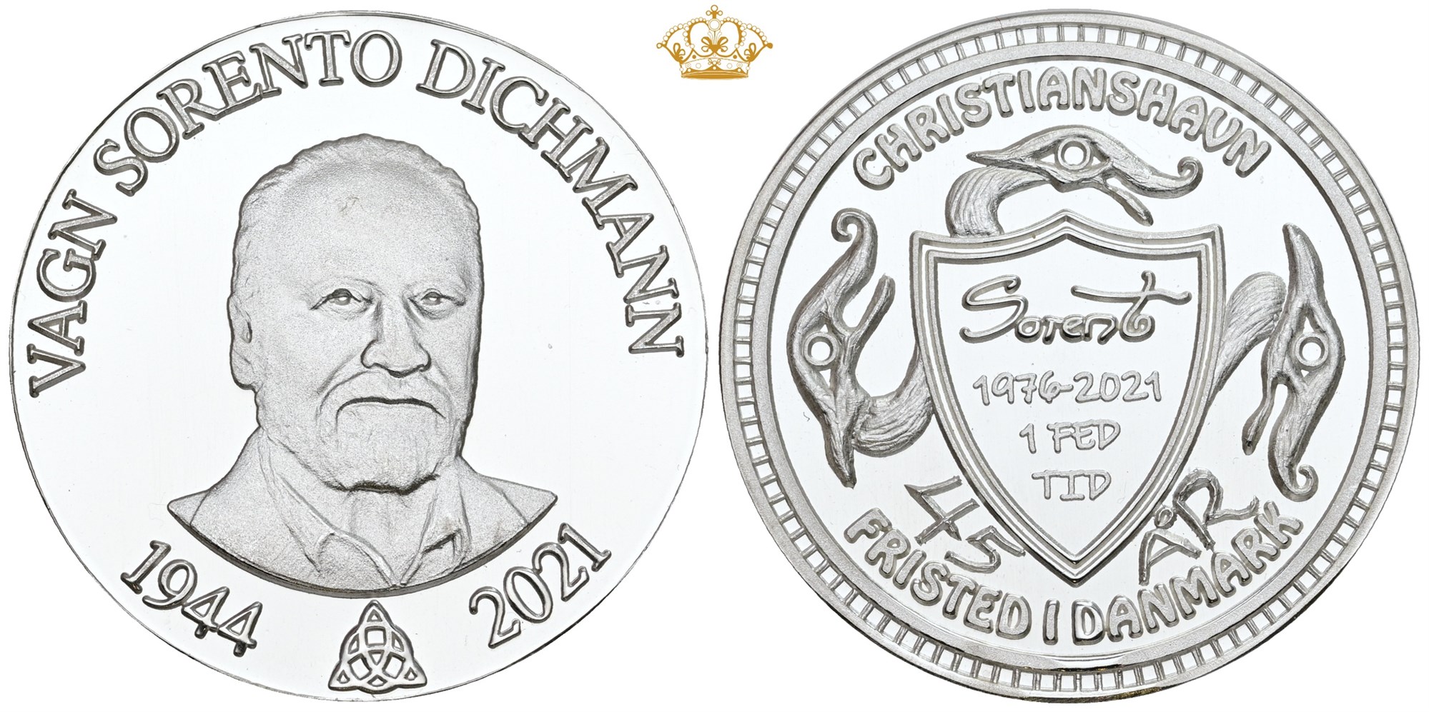 Vagn Sorento Dichmann (1944-2021), "En Fed Tid - 45 år", sølv, nr. 96, Prooflike, hairlines på forsiden.