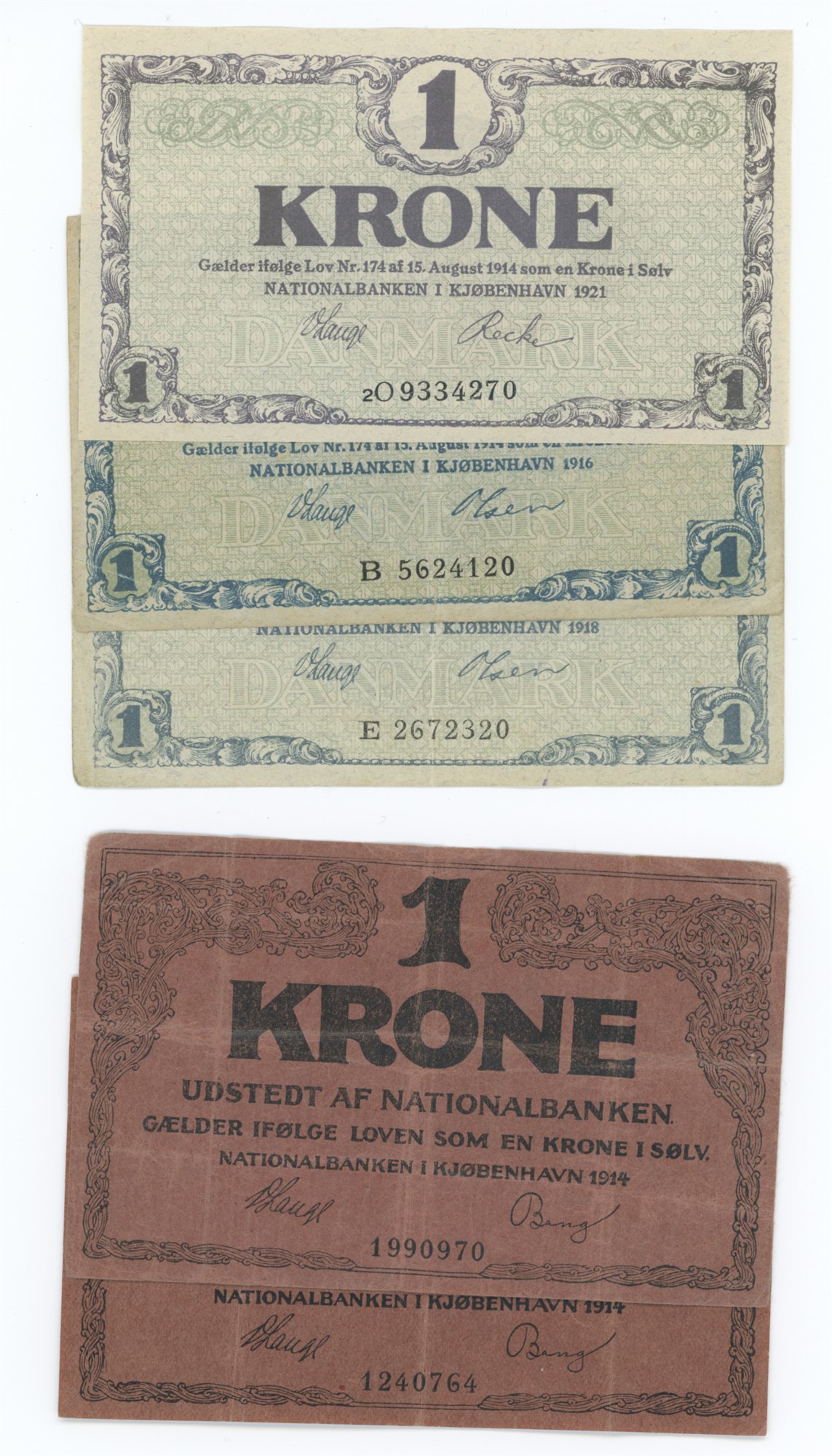 1 krone 1916 (2), 1916, 1918, 1921. (5)