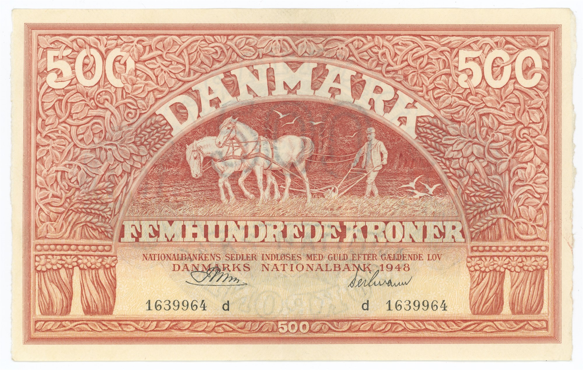 500 kroner 1948 d, nr. 1639964, Riim / Teilmann.