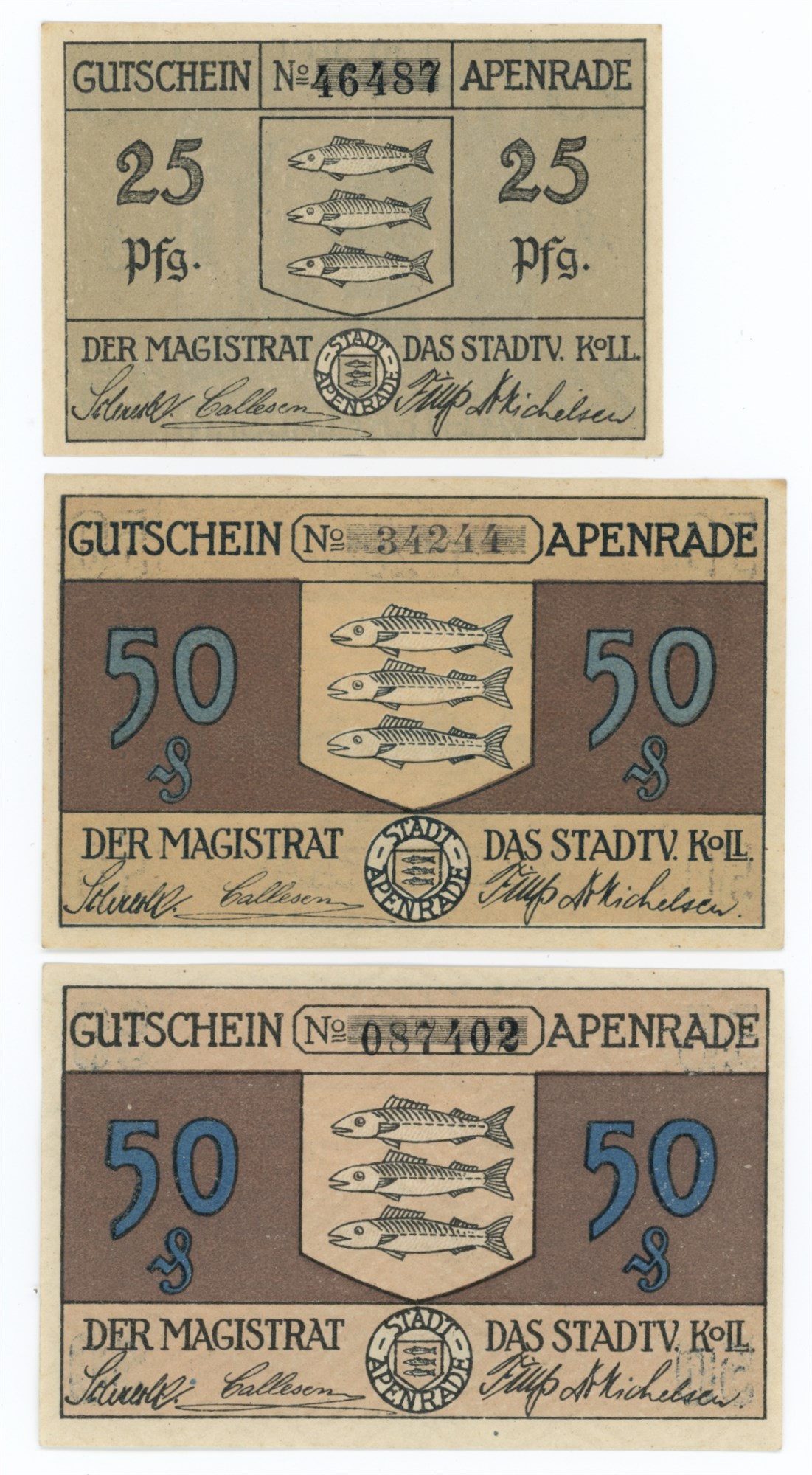 2 Pf. 1920, 50 Pf. (2) forskellige, i alt 3 stk. (3)