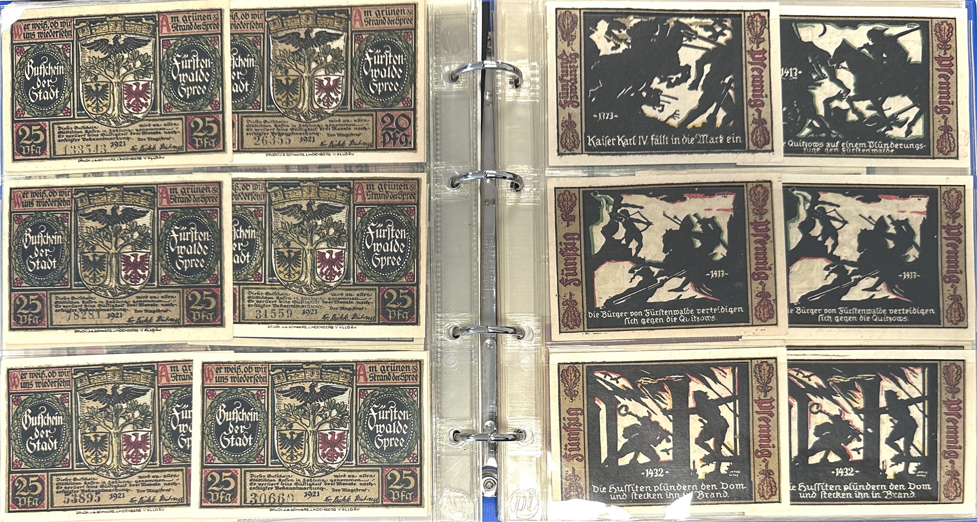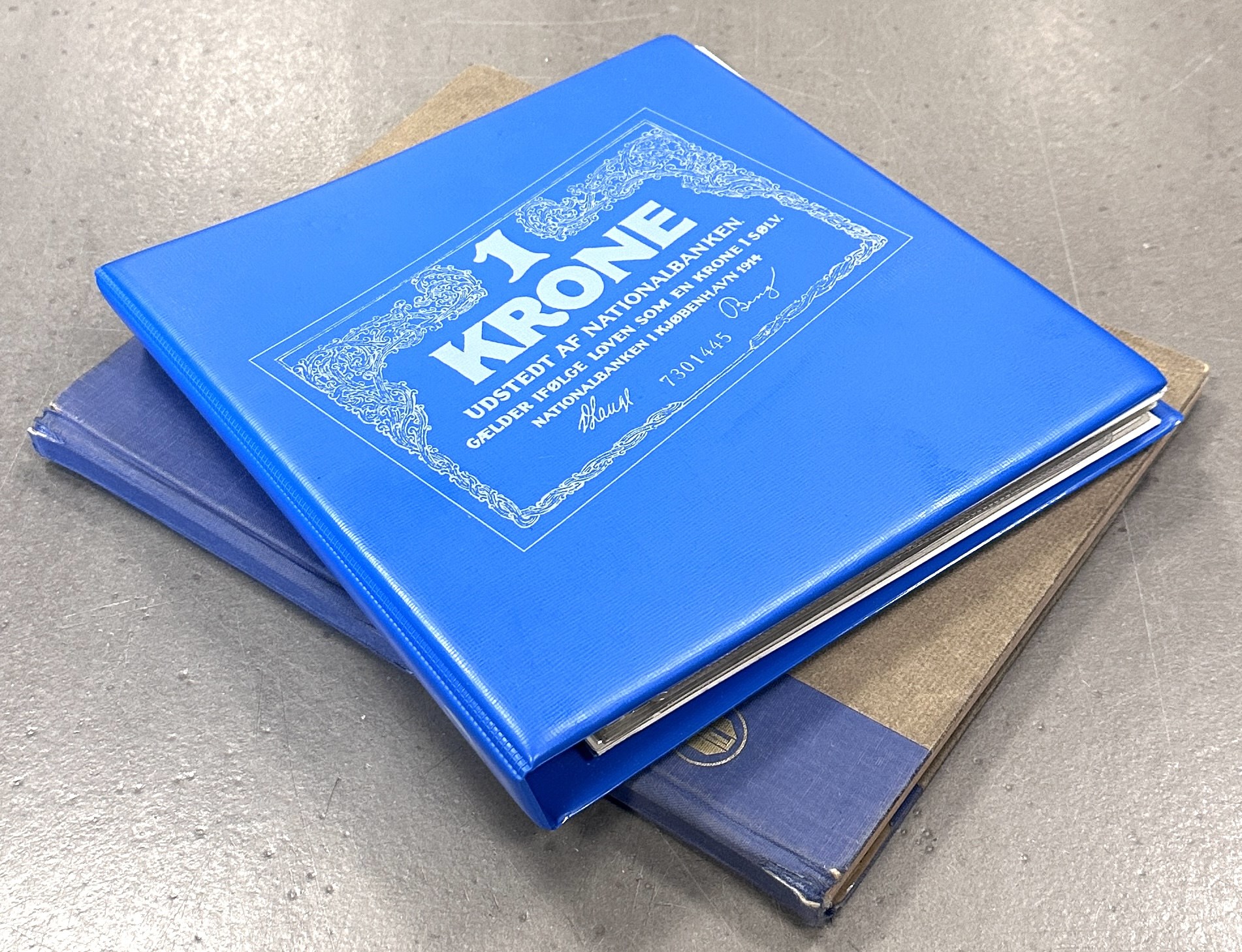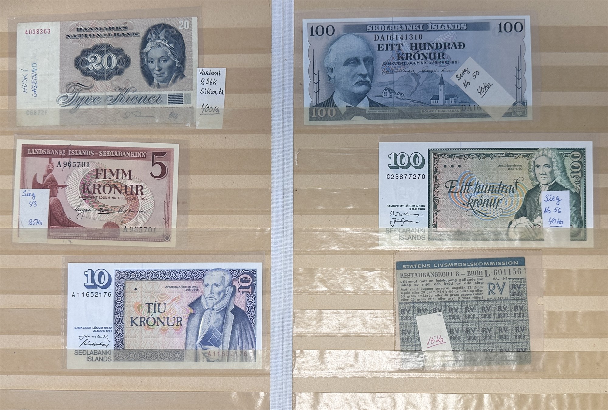 Samling div. i 2 albums, bl.a. Danmark, Island samt danske og tyske nødsedler, i alt mere end 100 stk. (+100)